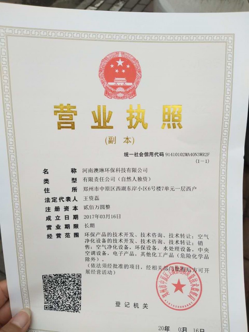 本公司经过郑州市中原区工商管理与技术监督局认证