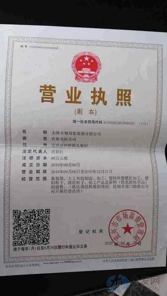 荣誉资质 无锡市翱翔集装袋公司