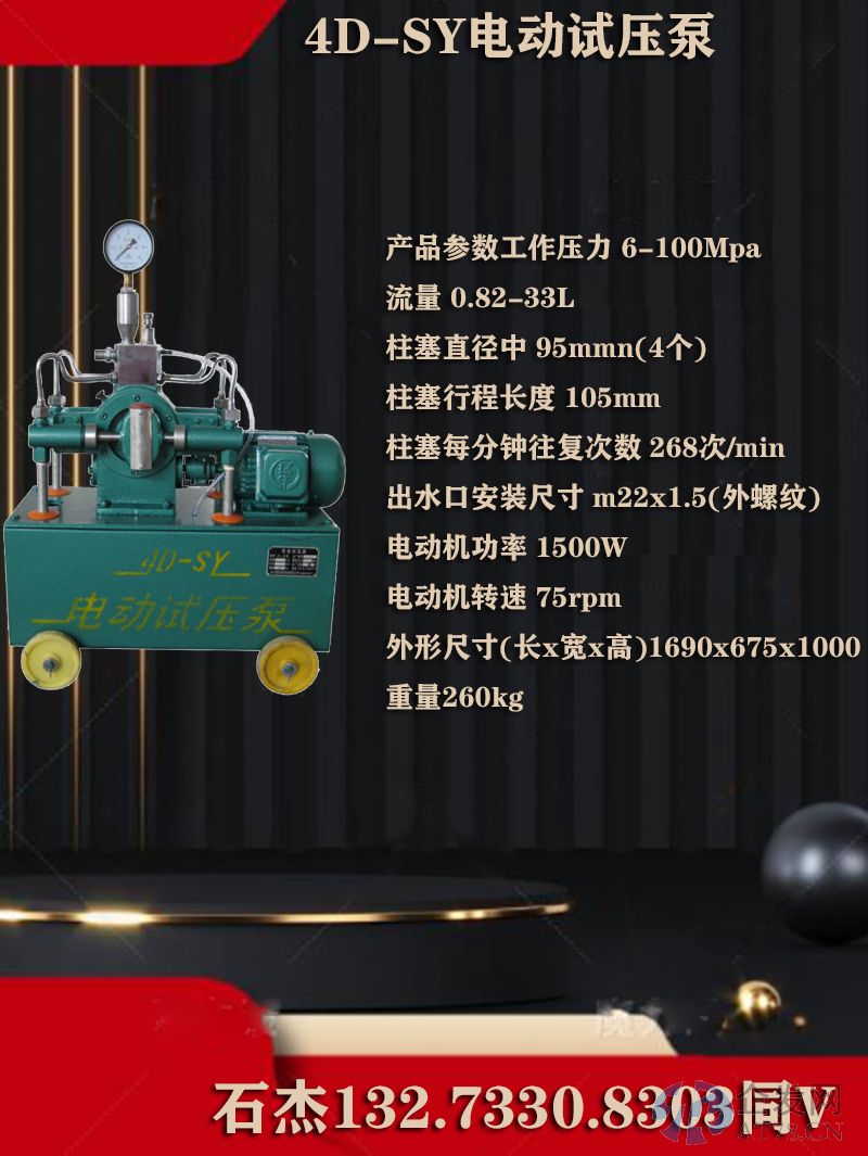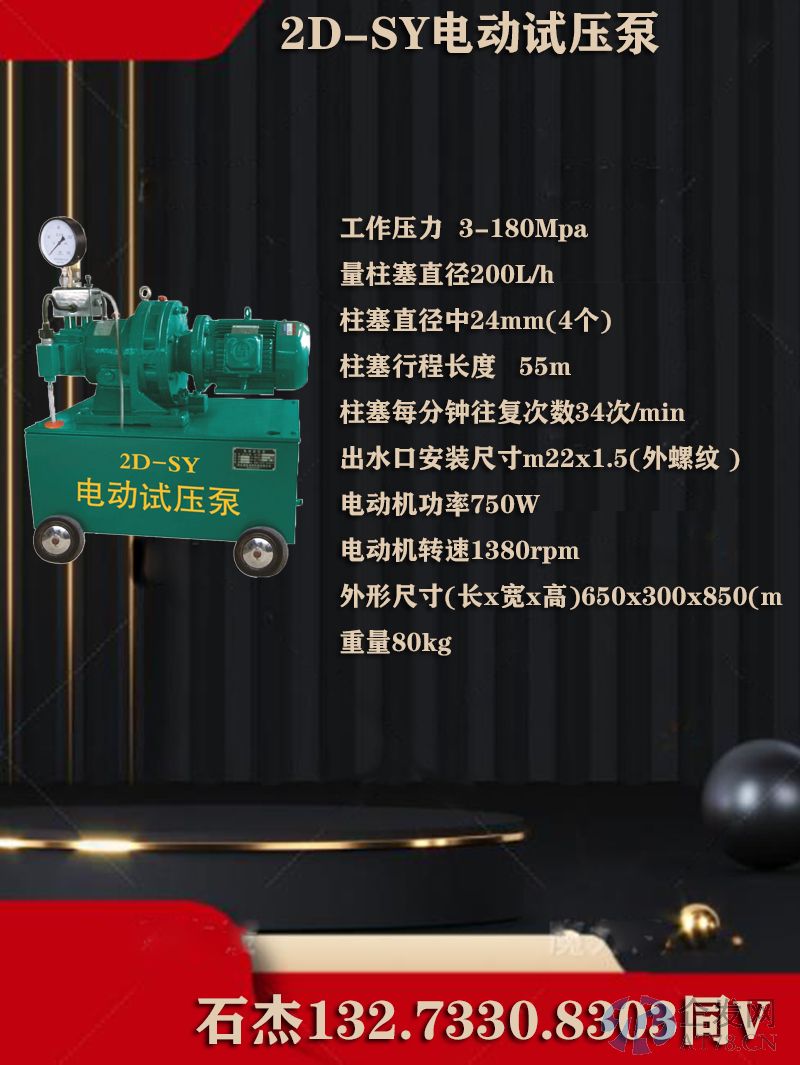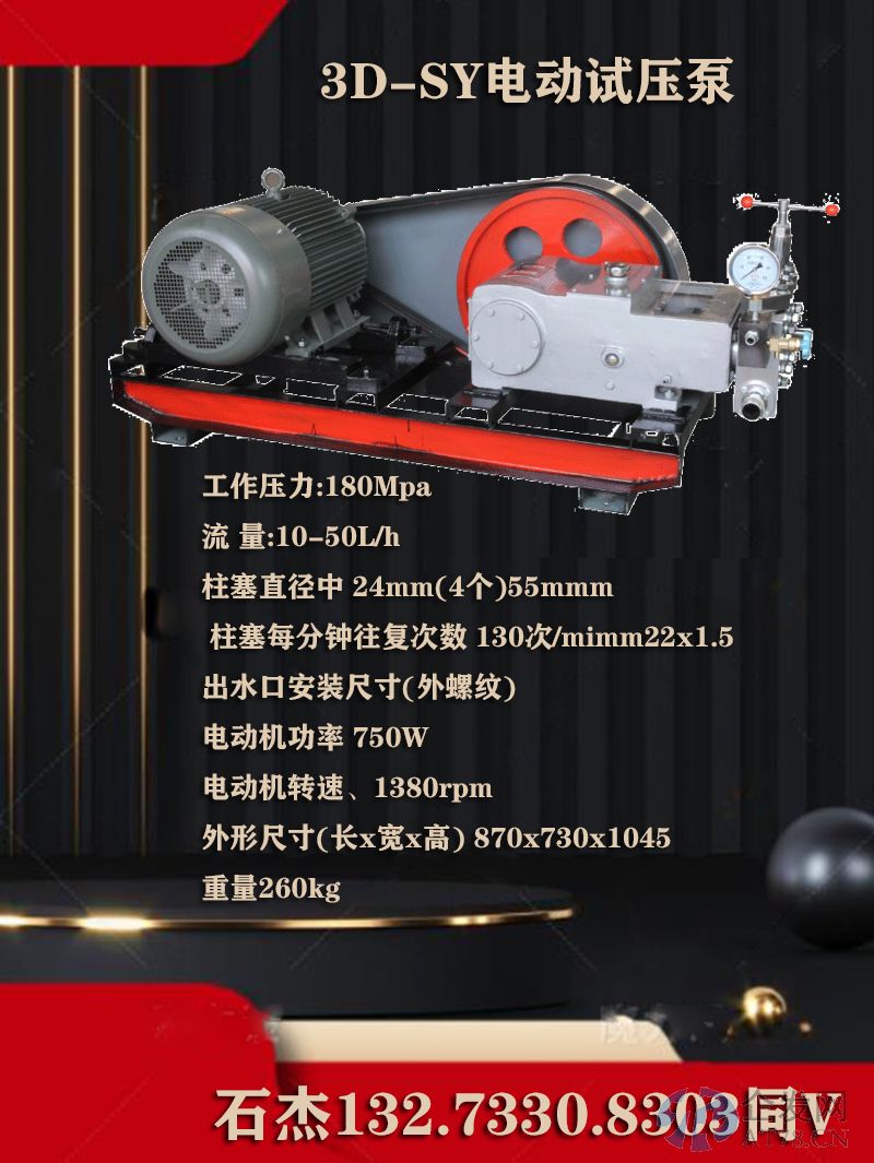 电动试压泵是一种用于增加压力的设备,可对各种压力容器、管道、阀门等进行压力试验。它主要分为手动打压泵和电动打压泵。