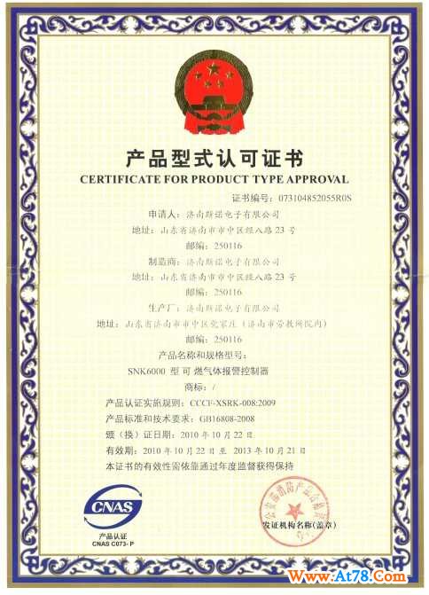 产品型式认可证书