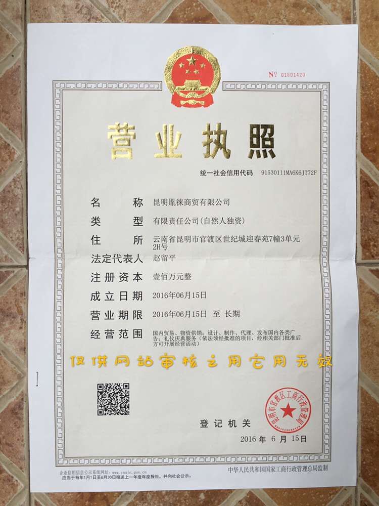 云南省昆明市昆明胤徕商贸有限公司营业执照