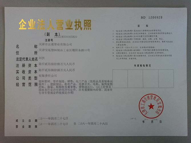 天津市京通管业有限公司-供应PE管材管件,PVC管材管件,PPR管材管件,PE双壁波纹管,CPVC电工套管,PE碳素管,PE通信子管,地源热泵管,格栅管 ,PE-RT地暖管。梅花管PE钢丝骨架管,钢带增强聚乙烯管 MPP高压电缆穿线管,HDPE双壁波纹管